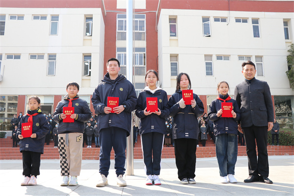 精品小學部的少年們步履鏗鏘,他們目光堅定,大踏步邁向升旗臺。伴隨著慷慨激昂的國歌,鮮艷的五星紅旗迎著朝陽冉冉升起,隨風飄揚在禮儀廣場上空。