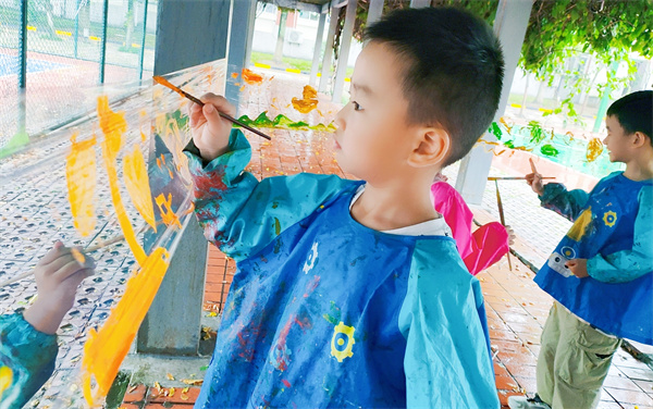 對(duì)小朋友們來(lái)說(shuō),無(wú)論是白紙、畫布、墻壁或是石頭,都可以成為他們施展藝術(shù)天分的地方,“保鮮膜繪畫”就是一種結(jié)合自然、藝術(shù)的全新體驗(yàn)。落葉知秋,合肥中銳學(xué)校里一片生機(jī)勃勃的景象,幼兒園的小寶貝們?cè)谧咸贅溟L(zhǎng)廊里進(jìn)行著一場(chǎng)與“秋”、與自然的溫情對(duì)話。