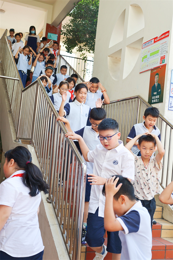 9月18日上午,合肥中銳學(xué)校組織全體師生舉行了 “九·一八”防空疏散演練活動(dòng)。上午9時(shí)18分,校園內(nèi)防空警報(bào)拉響。全校師生聞聲而動(dòng),全體學(xué)生在老師的指揮下迅速躲在課桌下等安全地帶。第二聲警報(bào)拉響后,學(xué)生在老師的指引下按照預(yù)定路線快速、有序地撤離至禮儀廣場(chǎng)、運(yùn)動(dòng)場(chǎng)等安全區(qū)域,各班級(jí)迅速集結(jié)并清點(diǎn)人數(shù)。