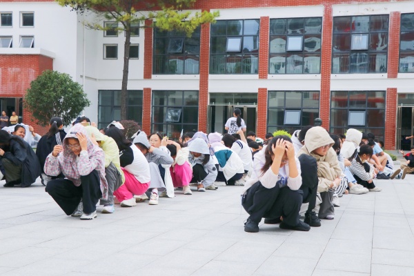 上午9時18分,急促的防空警報聲劃破了校園的寧靜。隨著演練信號響起,全校師生立即進入應急狀態。各班學生在班主任和任課教師的指揮下,迅速雙手護頭,沿預定疏散路線快速、有序撤離教室。樓道疏導崗位教師提前到位,指引方向、維持秩序,確保疏散過程安全暢通。
