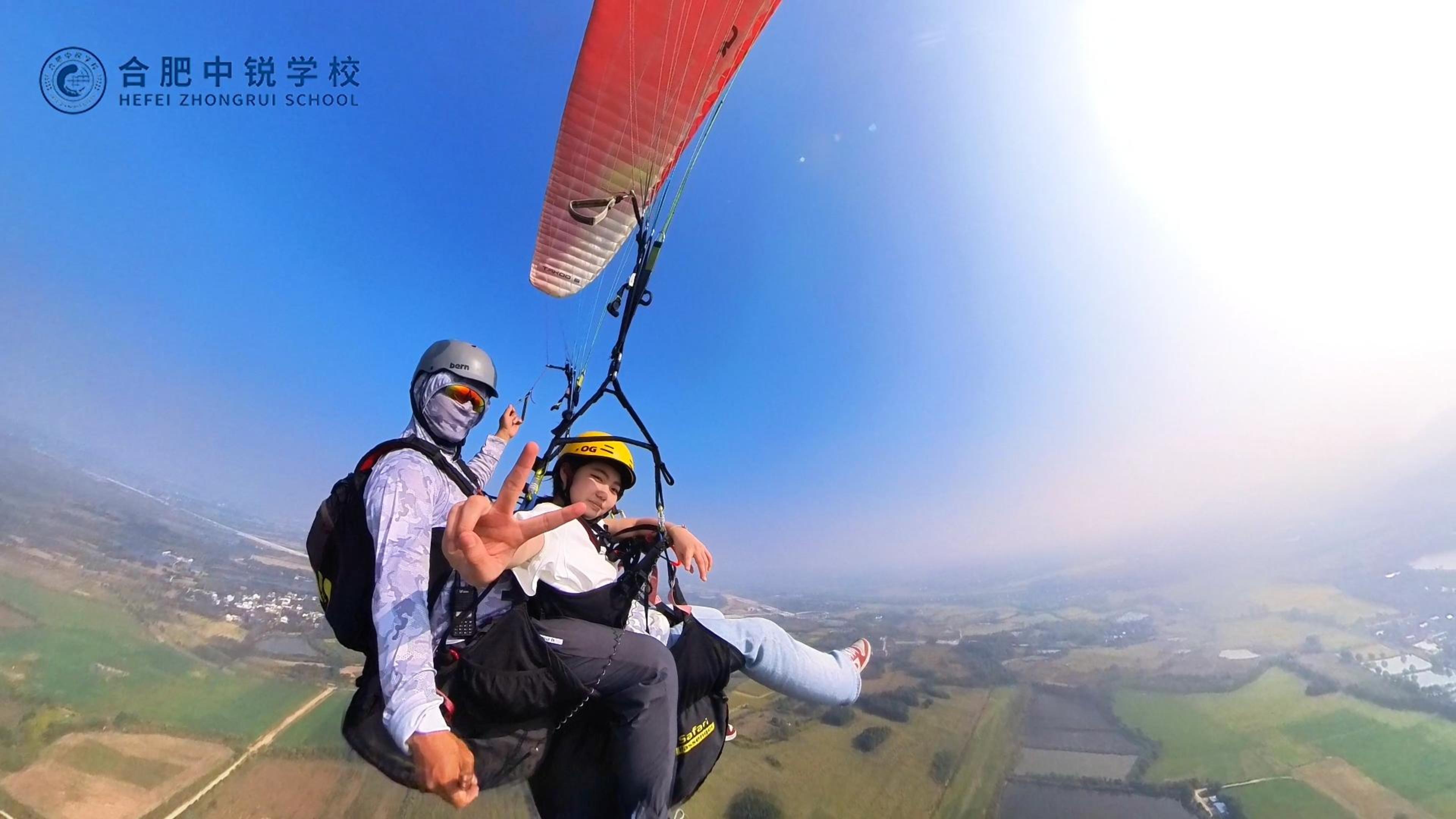 秋日的陽光灑滿大地,晨光漫過蘆葦蕩,風里還夾雜青草和湖水的味道。近日,合肥中銳學校融合高中部的學生一起在秋日的暖陽下前往濱湖之翼飛行營地,共赴一場刺激的空中之旅——滑翔傘。